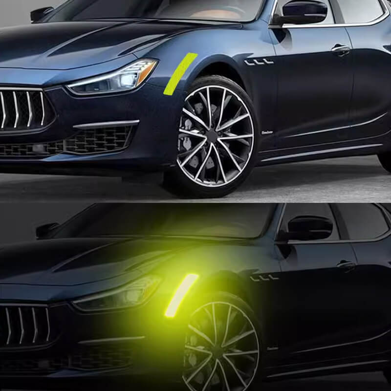 A good reflective sticker doesn't just glow, the key is to reflect strong light! The highly reflective material used in Auto Safety Warning Reflective Stickers makes them bright enough thus easier to see in the dark. This helps make your vehicle more visible and safer to drive in low light conditions. The superb reflectivity will be the first thing people notice and you don't have to worry about it being too strong and hurting your eyes.Everyone's vision at night has a different degree of restriction, the use of night reflective stickers to others to give a wake-up call, more for our own safety.