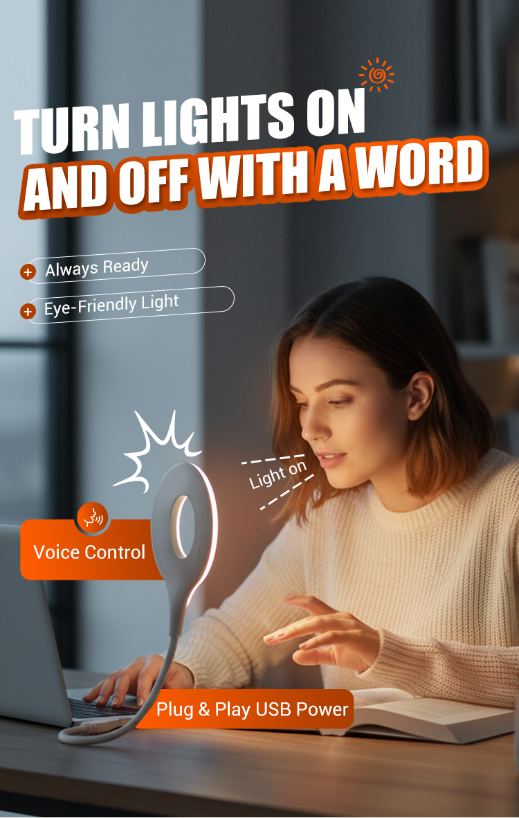 🏆High-tech voice-activated USB LED lamp⚡👑